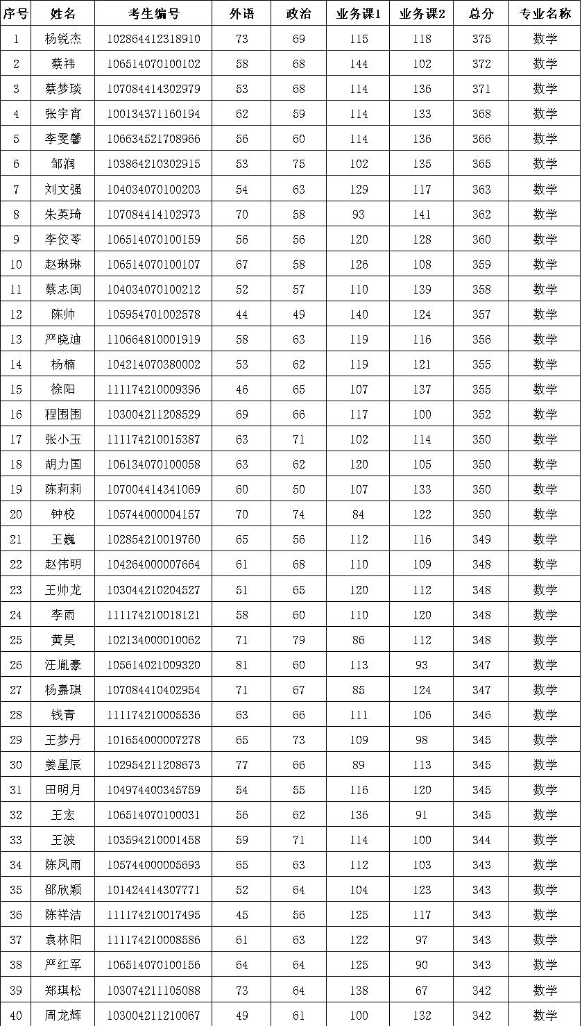 根据《51吃瓜 2024年硕士研究生招生复试录取工作实施细则》中数学调剂的基本要求,及复试比例1:1.5的差额,按照初试总分由高到低的原则,复试面试名单如下: