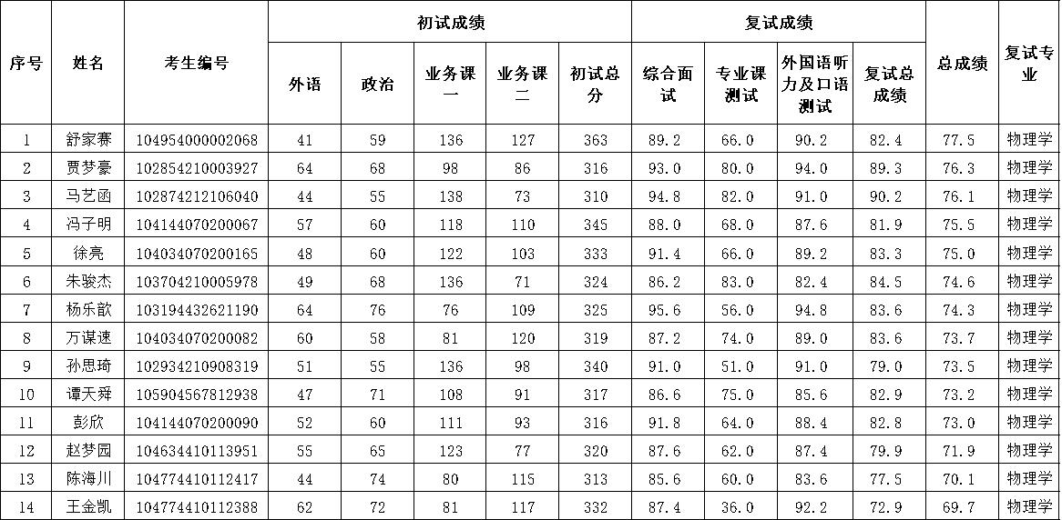 备注:复试成绩=综合面试×50%+专业课测试×30%+外语听力及口语面试×20%,复试成绩不合格(低于60分),不予录取。