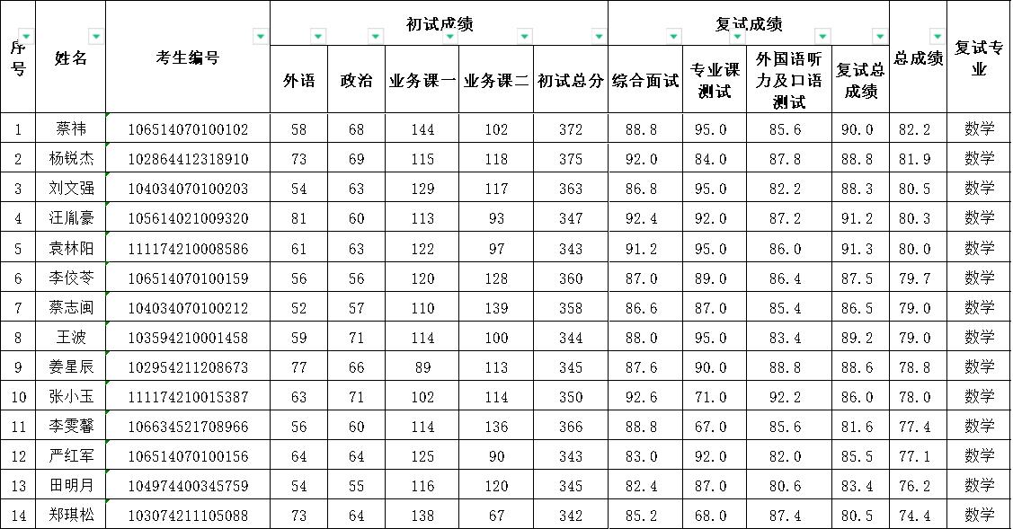 备注:复试成绩=综合面试×50%+专业课测试×30%+外语听力及口语面试×20%,复试成绩不合格(低于60分),不予录取。