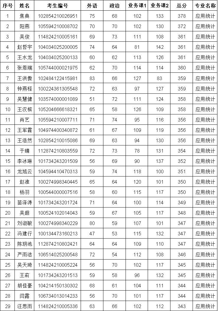 根据《51吃瓜 2024年硕士研究生招生复试录取工作实施细则》中应用统计调剂的基本要求,及复试比例1:1.25的差额,按照初试总分由高到低的原则,复试面试名单如下: