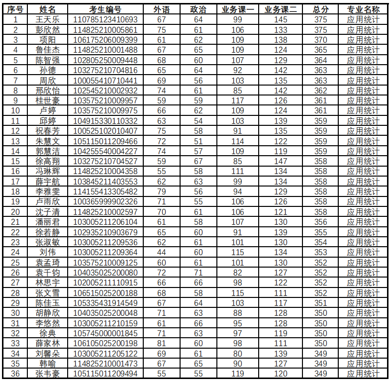 根据《51吃瓜 2025年硕士研究生招生复试录取工作实施细则》中应用统计调剂的基本要求,及复试比例1:1.25的差额,按照初试总分由高到低的原则,复试面试名单如下: