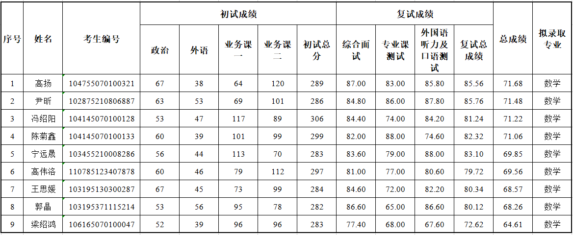 经考生初试、复试等各个环节,学院招生工作领导小组确认,现对拟录取的考生进行公示(详见下表),公示时间为2025年4月16日至4月22日(七天),如有疑义,请以书面的形式反映,反映问题要实事求是,署本人真实姓名。