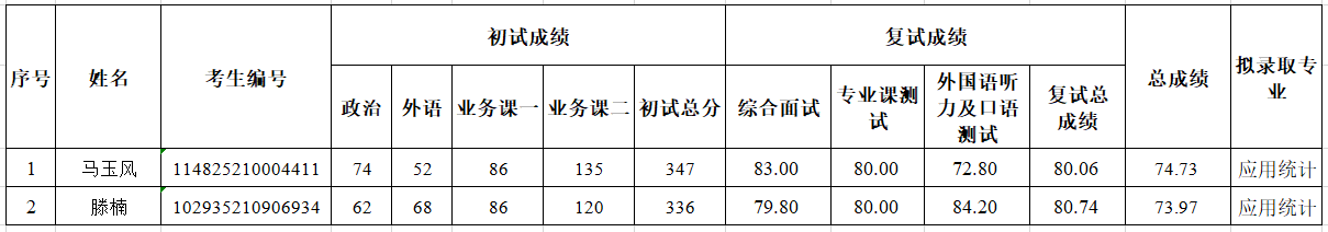 经考生初试、复试等各个环节,学院招生工作领导小组确认,现对拟录取的考生进行公示(详见下表),公示时间为2025年4月17日至4月23日(七天),如有疑义,请以书面的形式反映,反映问题要实事求是,署本人真实姓名。
