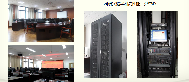 拥有良好的科研环境和实验条件。拥有IBM P550小型机一套,30个节点的曙光计算集群系统,可以满足科研需要的高性能数值计算;IBM存储服务器磁盘阵列一套,存储容量可达16X300G,可用于科学数据的存储和分析运算。实验室配置有 SAS、Matlab、Lingo、Mathematica、Maple、Weka、Spark等科学计算软件和数据分析平台。通过实验室的高速网络,可以进入Science Direct、Springer、Elsevier 国际著名的电子检索系统,满足科学研究中所需要的文献资料查阅。