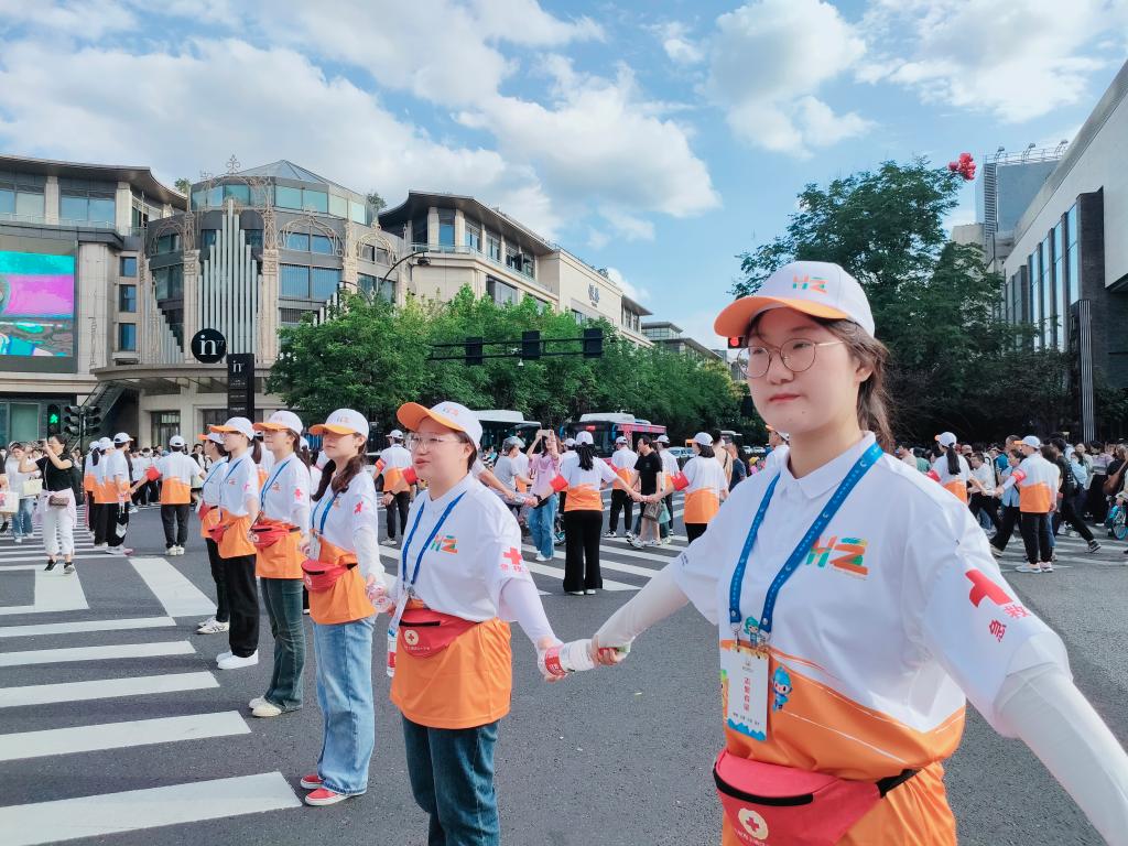 在湖滨街道,理学志协联合机能志协、艺术志协组织了136位志愿者继续共筑“最美人墙”。今年,人墙志愿者们的“造型”变了,他们穿上了全新的亚运城市志愿者服装,活力满满,手牵着手组成“X”型人墙。随着红绿灯的交替往复,“人墙”不断开合,变换各种形态,协助人们遵守交通规则,并在高峰期及时隔断人流使车辆得以正常行驶,为游人与过往车辆提供了安全的通行道,营造了更好安全、舒适的游玩氛围,优化湖滨周围环境。