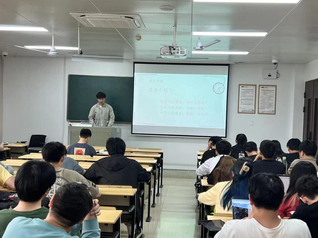 高度重视学生考研工作,积极营造“好学、勤学、乐学”的学习氛围, 通过开设考研班、开展考研经验分享交流会等,不断提升学院升学质量。本期考研经验分享会帮助学生对考研形势有了更深入的了解,有助于同学们树立考研信心,找准努力方向、做好复习规划。(学工办 来雪琦 蔡瑞康)