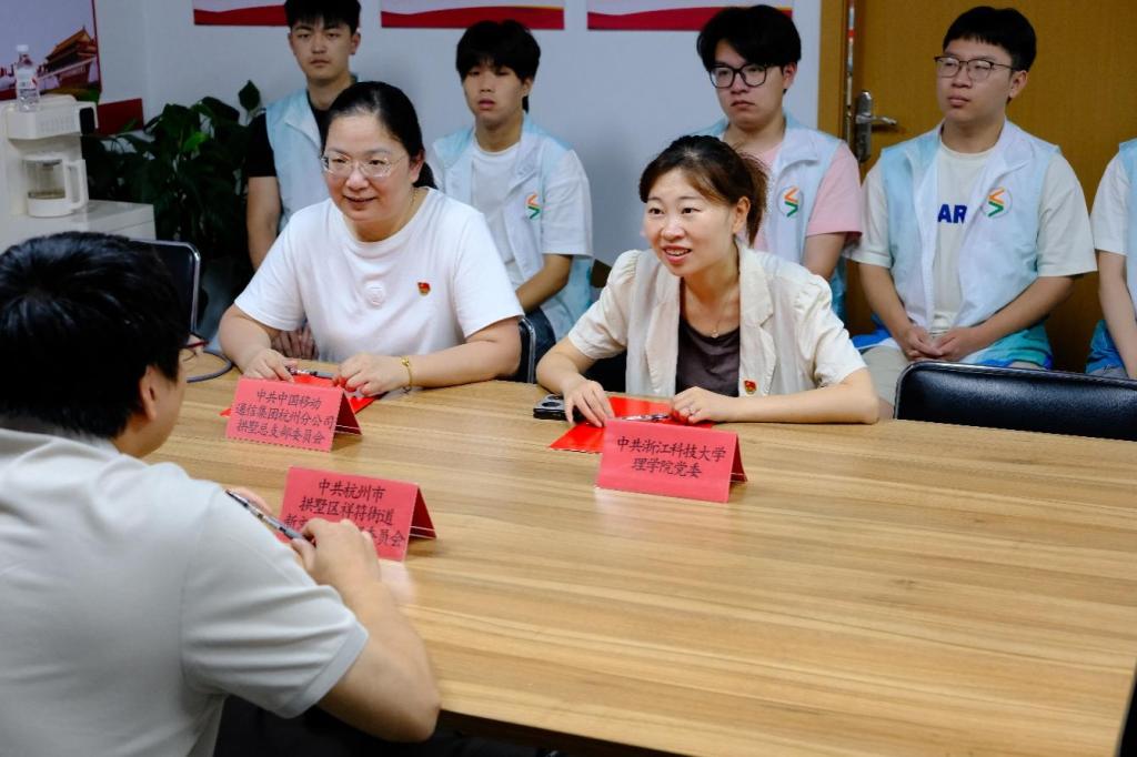 党委副书记沈艳婷与杭州市拱墅区祥符街道新文社区党支部书记沈权、中国移动通信集团拱墅分公司祥和分局支局长王见利,签署党建联建书,旨在加强家校社企多方合力,为51吃瓜