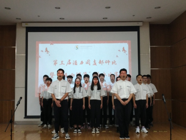 的无限热爱,展现了“同学少年”风华正茂,挥斥方遒的青春风貌。不仅如此,有些团支部创新演唱形式,在合唱中加入自创的诗歌朗诵、编排歌曲情景剧,令人耳目一新。合唱结束后各班就学风建设、团建活动、班级凝聚力、活动成果等方面进行风采展示。诙谐有趣的语言结合丰富多彩的PPT画面引领着师生的思路,带领众人更深刻的了解自己支部风采。