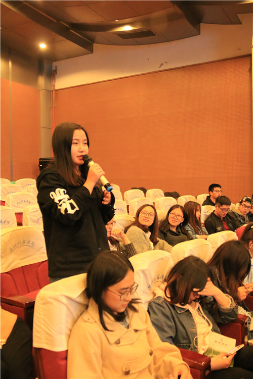 在和同学们的互动环节中,有几位同学向郑苏法书记提出了自己对于学科竞赛、创新、团队成员之间的矛盾等方面的困惑,郑书记为同学们一一解答。他将自己的经历心得分享给大家,并且告诉同学们在日常学习生活中要打好基础,多参加一些创新活动,在学习和参与的过程中提高自己的创新意识。