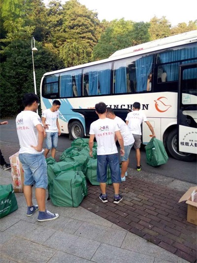 为了赶上青田发往万阜的唯一一趟班车,队员们不得不早早地出发。天刚微亮,队员们便怀着激动地心情带上准备好的行李登上了我们的爱心大巴。