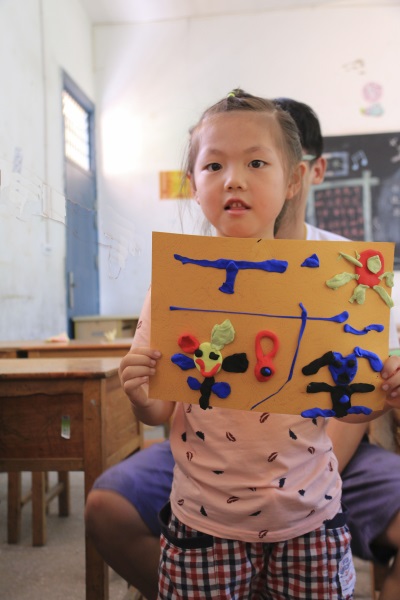 7月29日,“晴天梦”先锋队青田支教之行第三天,队员们带着饱满的热情准备好为孩子们带去新一天的课程。针对不同年龄段的孩子们,队员们将他们分成两个班,进行针对性的教学。其中,在手工课上,孩子们都对今天的教学内容——橡皮泥制作尤为感兴趣,积极投入参与当中,并与自己的“作品”合影留念。