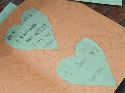 下午,小学组为了提高孩子们的动手能力并表达他们的谢意,特意在手工课上安排了手工制作贺卡。孩子们发挥着丰富的想象力,剪纸、绘画、写字,经过一步步的细心操作,最终将一张张精致的“作品”展现给了同学们、老师们。