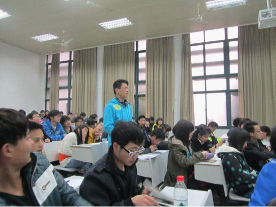 裘哲勇教授首先向同学们介绍了数模的基础知识,使大家对数模有了一个初步的认识,并以浙江省往年数模竞赛题为例,详细讲述了数模竞赛题的特点、解法以及论文写作要求,让大家对数模竞赛题型和竞赛形式有了系统的认识。裘教授还与同学们分享了自己对数学建模的亲身体会,他说:“数学建模是一门艺术,而不是一门技术。”会上,同学们还积极提问,裘教授耐心详细地一一做了解答。
