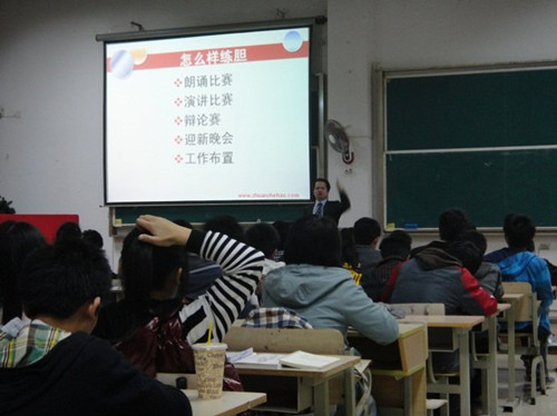 郑少华重点介绍了演讲技巧的两大法宝:“九宫格”和“鱼骨图”,他热情风趣的演讲方式赢得了同学们热烈的掌声,其中的互动环节更是将现场的活跃气氛推向高潮。此外,郑少华还向大家传授了克服上台恐惧心理的方法,增加自信心等方面知识。最后,郑老师还为同学们提供了以“赢在大学”为主题的上台演讲机会,大家都积极争取,侃侃而谈。