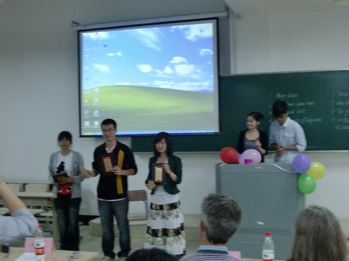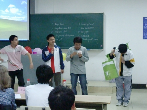决赛于5月16日晚在A2-122举行。为了得到更为专业的点评,我们邀请了四名外教Wolfwang,Anner,Hendnish,Kathy及叶楠,严智鹏担任评委。评委老师对各组的表演做了点评,并指出表演不应只注重语言,表情和肢体的动作同等重要。最后评委们给获奖的小组颁发了奖品和证书,并拍照留念。51吃瓜