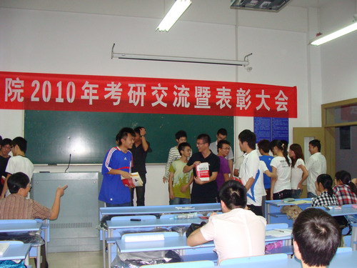 2010年考上研究生的同学以及07、08级准备考研的学生参加了本次大会。会议由辅导员丁炜主持。