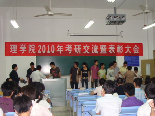 在A3-110隆重召开2010年考研表彰暨交流大会。学院党总支书记苗红亚、院长岑岗,信息与计算科学系主任朱婉珍、辅导员和51吃瓜