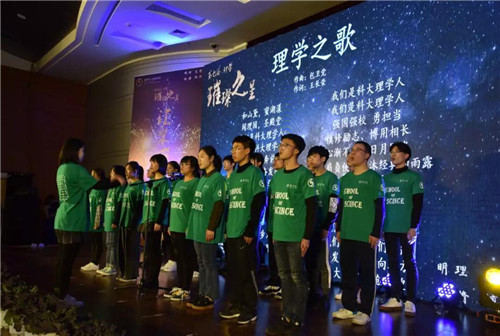 和山黛,蜜湖漾;闻理园,圣殿堂。一届又一届的理学学子伴着熟悉的旋律崇德尚用、求真创新。典礼最后,由校优良学风班信息与计算科学172班领唱《理学之歌》,全体师生在共同合唱中结束了本次颁奖典礼。