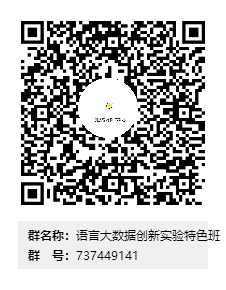 以“姓名+专业+学号”实名加QQ群“语言大数据创新实验特色班”(QQ群号737449141,或扫码)。报名截止日期:2020年10月10日。