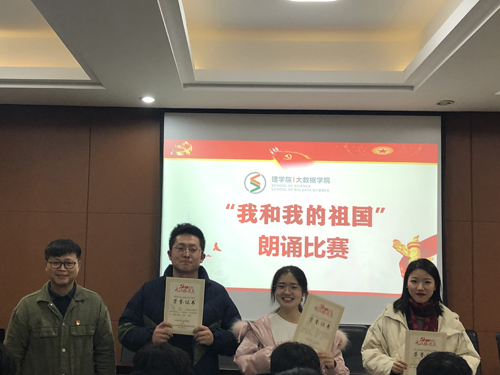 本次朗诵比赛主要由学院入党积极分子组队参加,由学生党员担任小队指导老师,朗诵内容以“我和我的祖国”为主题,共有9支队伍进入决赛。大家在赛前用心准备,比赛中都用饱含激情的声音和配乐把爱国、爱党、爱社会、爱人民的热情表达出来。经过激烈的比赛,最终“新青年队”的《我们的新时代》和“中国队”的《我为你骄傲,我的祖国》获得了朗诵比赛的一等奖。