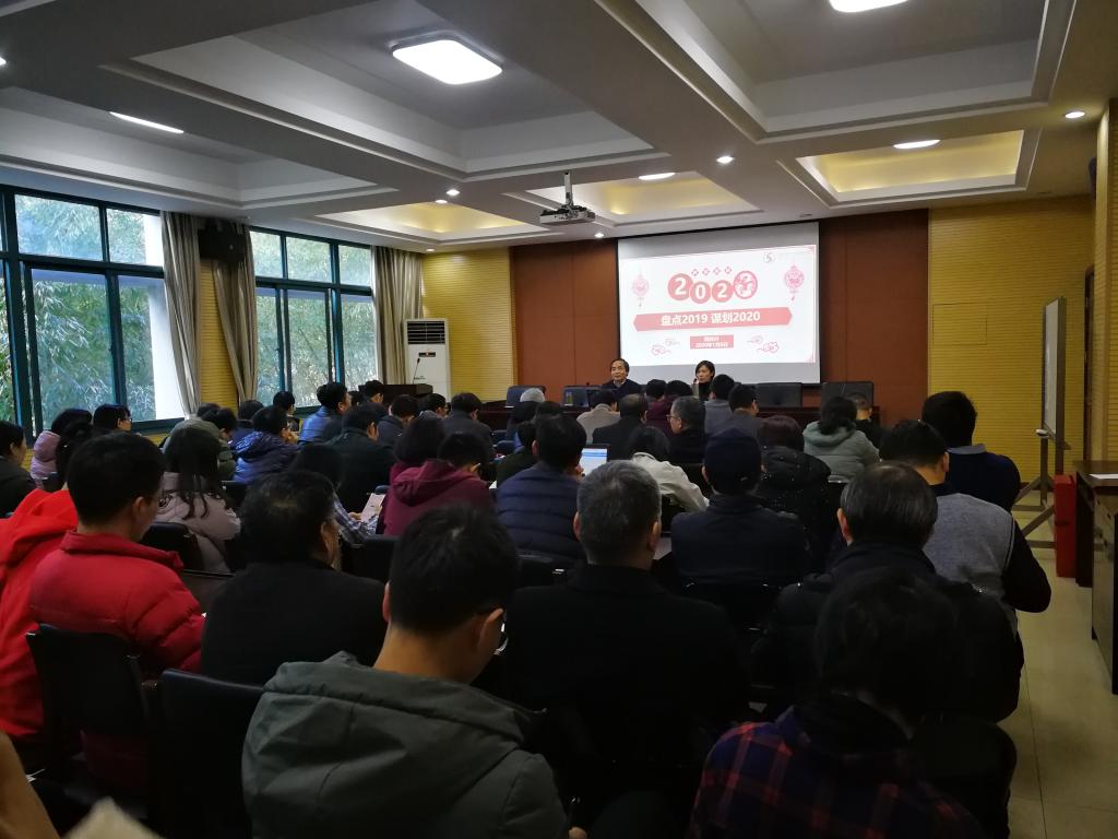 在A4-216会议室召开全院大会,盘点2019,谋划2020。学院班子成员、全体教职工参加,会议由校党委委员、院长陶祥兴主持。