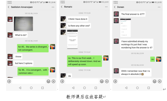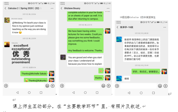 学生方面, 尤其是非洲学生(也有住学校听松公寓的留学生), 上网课过程中, 有时遇到网络不稳定、突然断电(比如受天气影响)等情况, 这个很难控制. 现在只能通过Blackboard平台上的教学视频、课件等在线资源+教师的课后答疑, 尽量减小不利影响.