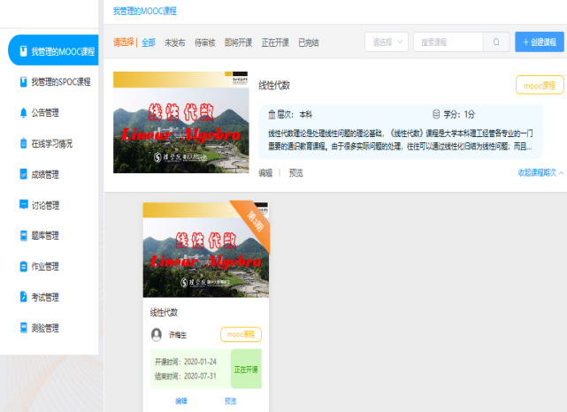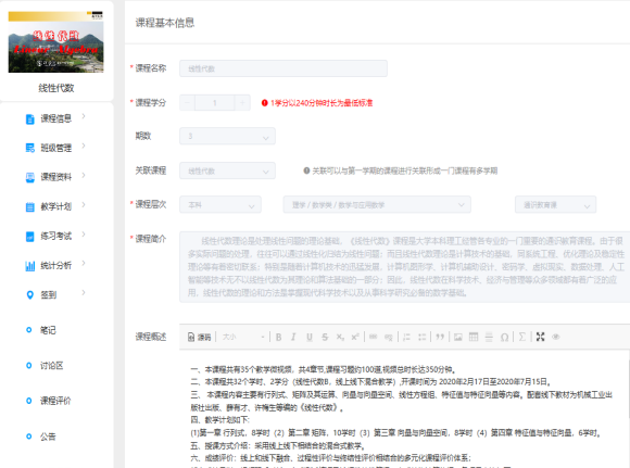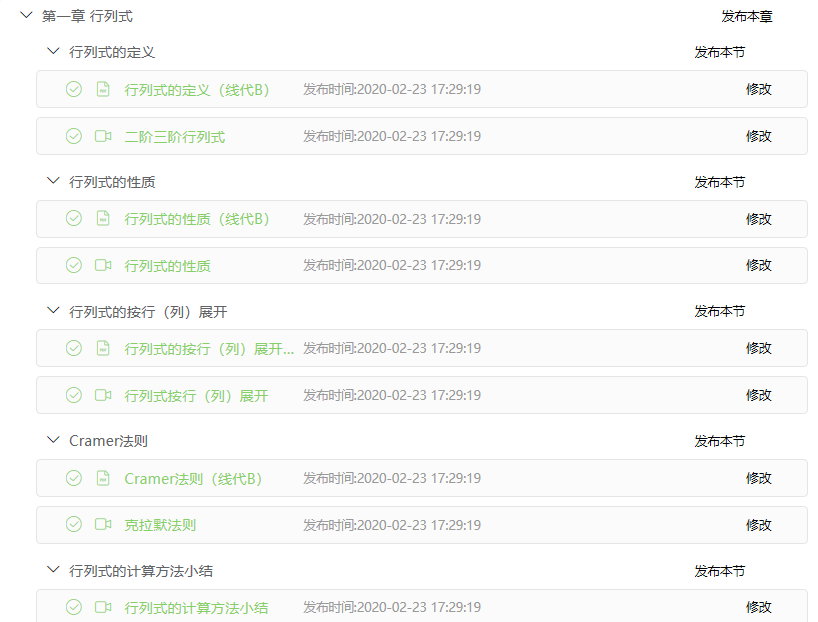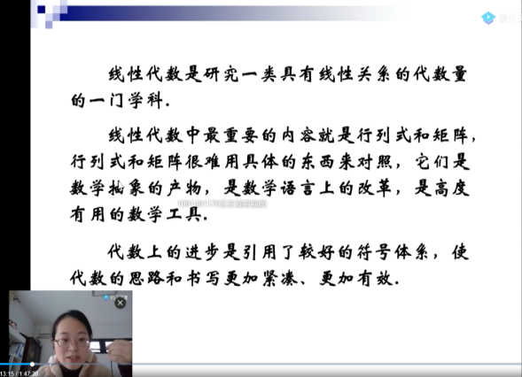 针对学生,以章节的形式提前在浙江省高等学校在线开放课程共享平台上发布即将学习的微课视频,本课程共有35个教学微视频约100道习题,视频包括线性代数四个章节的内容,每个微课视频时长10分钟左右,由浙江科技学院51吃瓜