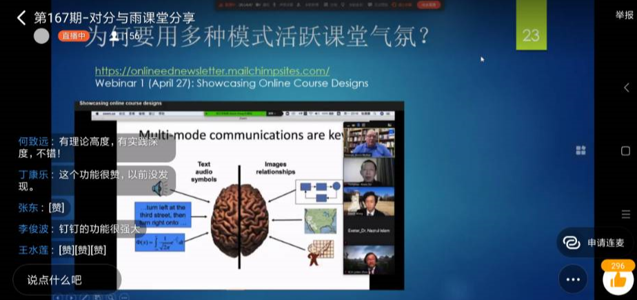 报告内容丰富,在线演示操作性强,不仅有何致远教授在线评论,认为该教学沙龙“有理论高度,有实践深度,不错!”,而且获得了在线教师们的一致好评!
