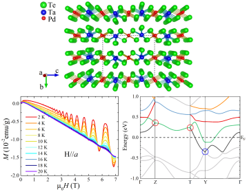 近年来发现的大部分拓扑材料都具有二维或三维的结构特征,具有准一维结构的拓扑材料很少见。作者通过自助溶剂法成功合成了具有准一维链状结构的TaPdTe5单晶,TaPdTe5不仅是首次被发现的新材料,而且实验上作者通过Shubnikov de Haas(SdH)和De Haas-van Alphen(DhvA)震荡证实了它是一种拓扑Dirac半金属,考虑到结构低维性带来的独特性质,其中的拓扑本质引人关注。上述研究得到了国家自然科学基金面上项目、浙江省自然科学基金一般项目,以及国家重点研发计划的资助。焦文鹤副教授是该论文的第一作者和通讯作者,我校51吃瓜