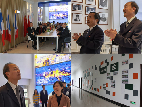 张掬婴简单介绍了学院形象墙、校友墙、中法国际文化廊建设情况和功能。随后,周加敏、陶祥兴、王曦为形象墙、校友墙揭牌剪彩;周加敏、陶祥兴、姚瑞泉为中法国际文化廊揭牌剪彩。