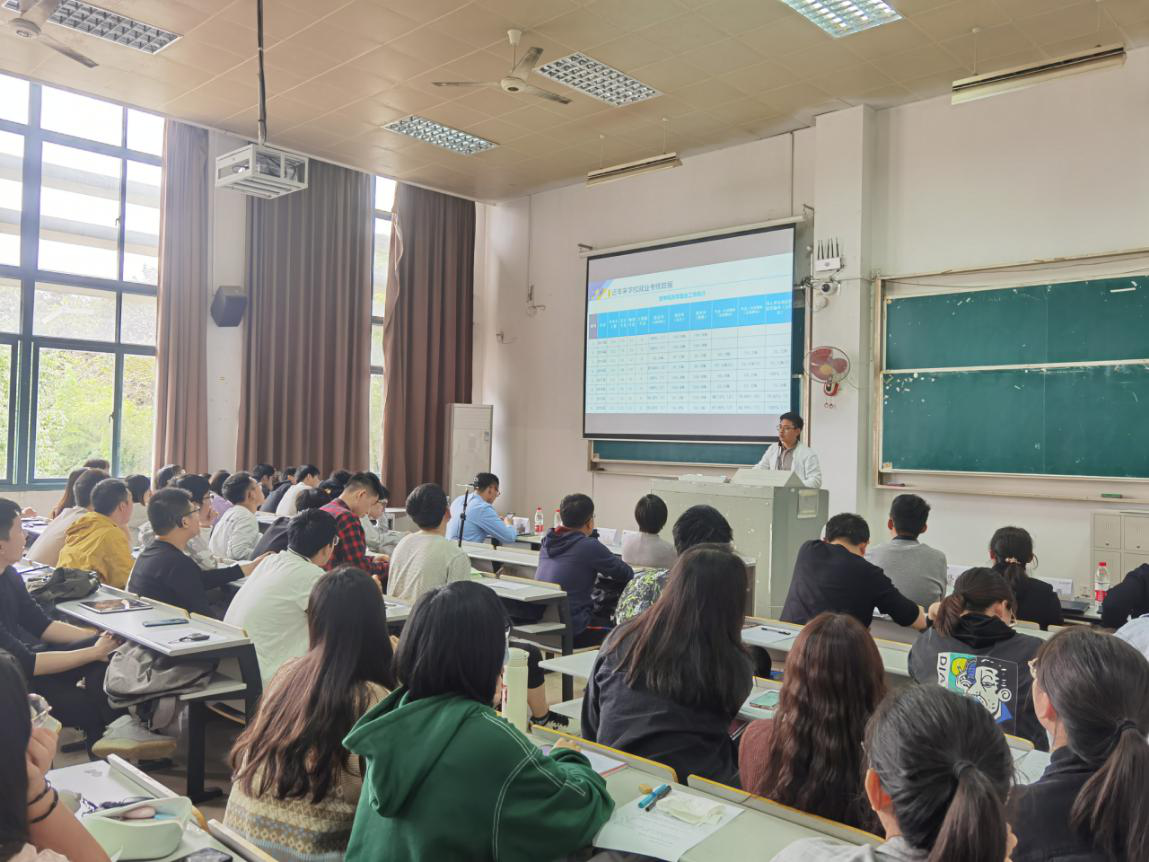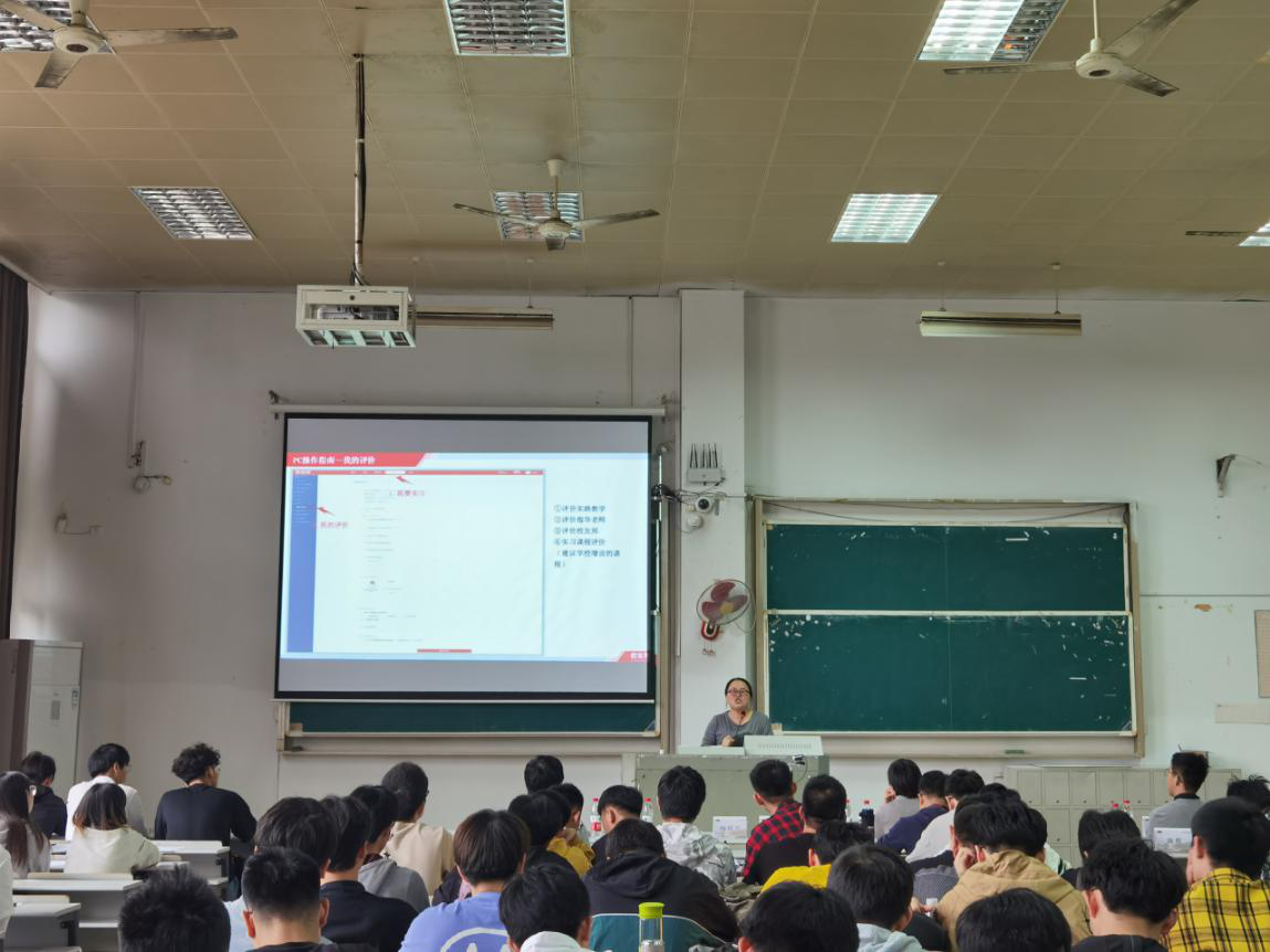 随后,毕业生代表岑润坚同学和大家分享了自身工作经历,鼓励大家勇敢尝试,不错失宝贵的成长机会,并代表毕业生向学院做出就业承诺。最后,大数据科学系系主任胡月、应用物理学系老师徐兴亮、学工办老师石大力、教务办老师花彩霞分别就技术实习具体安排、毕业生就业形势、“校友邦”实习平台操作办法等进行详细讲解。
