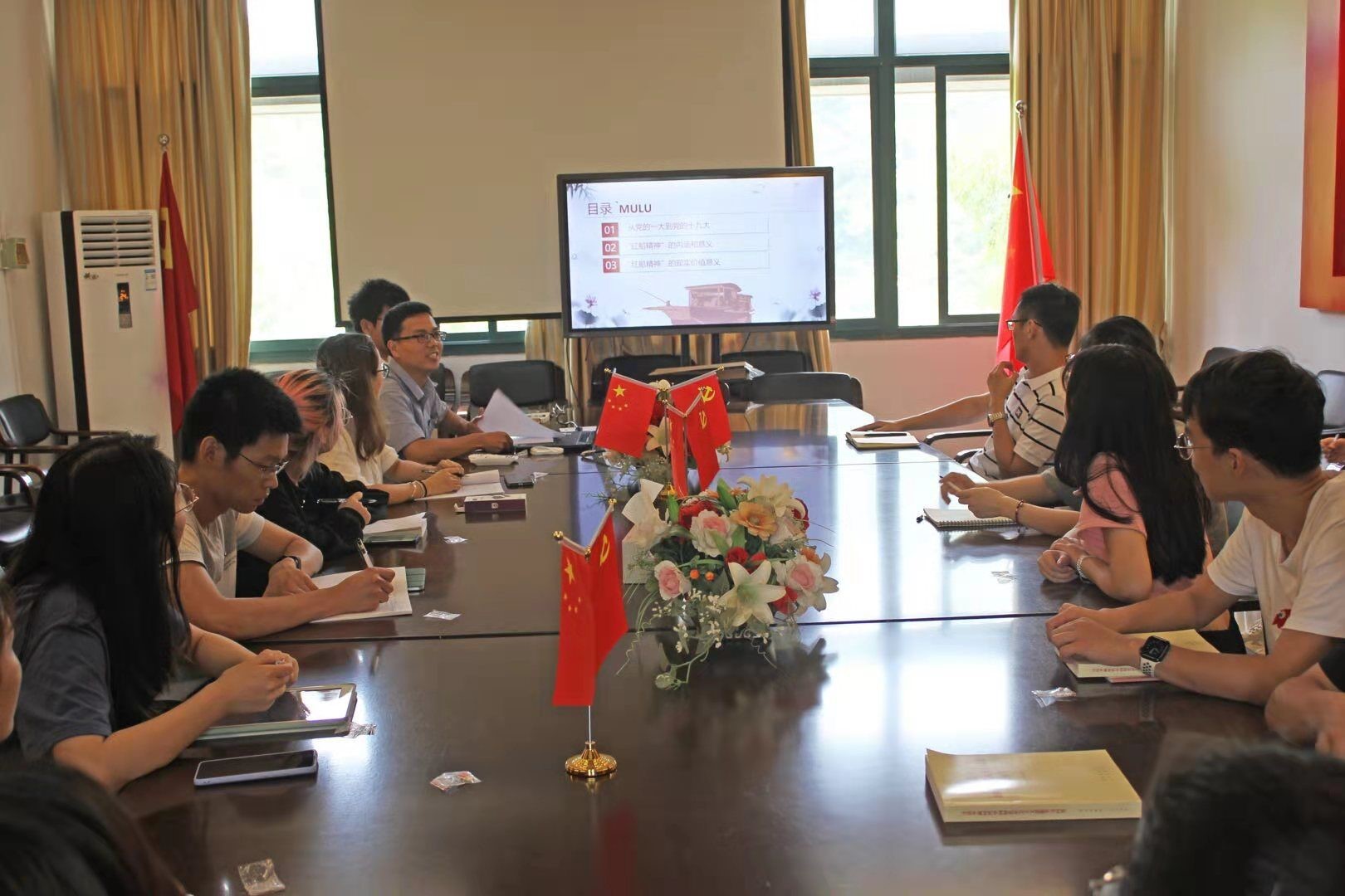为庆祝中国共产党成立100周年,扎实推进党史学习教育,6月22日,研究生第二党支部开展了以“红船精神”为主题的党课学习活动。本次党课由学院党委副书记黄奕筱主讲,会议由支部书记徐兴亮主持,支部全体党员参加了此次活动。