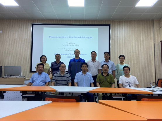 黄勇教授首先介绍了高斯概率空间中的Minkowski问题的研究背景,以及在解决过程中,如何利用Aleksandrov的变分思想,最后介绍了如何利用PDE的度理论给出光滑解,然后利用逼近方法得到其弱解的方法。黄勇教授的报告深入浅出,通俗易懂,非常精彩。