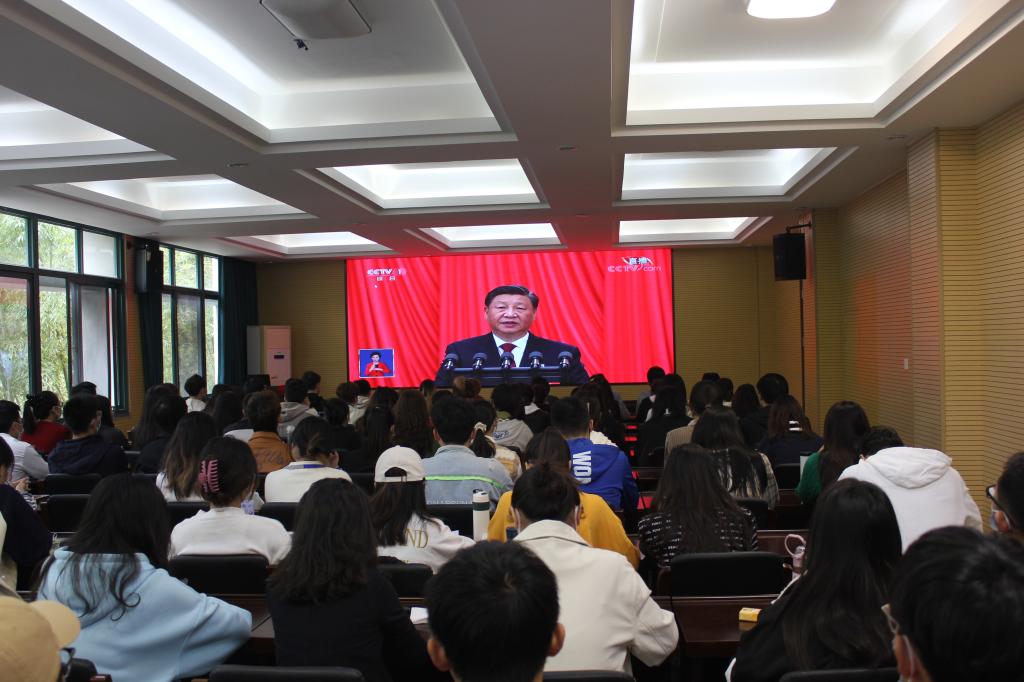 党委组织师生党员集中收看大会盛况。各支部组织所属党员同步收听收看。