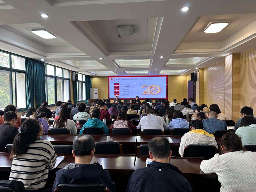 在A4-216会议室召开全院大会传达学习党的二十大精神。学院党政班子、全院教职工参加了会议,会议由党委书记张掬婴同志主持。