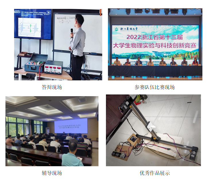 浙江省第十三届大学生物理实验与科技创新竞赛决赛在浙江农林大学举行。本次竞赛由浙江省大学生科技创新竞赛委员会(浙江省教育厅)、浙江省高等学校大学物理课程教学指导委员会、浙江省高等学校物理学类专业教学指导委员会与浙江省物理学会共同主办,主题为物理学与乡村振兴。有来自全省共56所高校(主赛道42所、职教赛道14所),2781个项目参加初赛,最终来自54所高校的627支队伍(主赛道524个、职教赛道103个)进入本次决赛环节。主赛道最终评选出一等奖81项、二等奖159项、三等奖236项。我校初赛报名82组,经过校内选拔筛选出20组优秀作品,参加小和山赛区评比后有20组全部晋级省决赛,经过学生、专家互评和激烈的答辩演示环节,我校20支参赛队伍发挥出色,最终4队获得一等奖、6队获得二等奖、8队获得三等奖,获奖数、一等奖数全省前列。