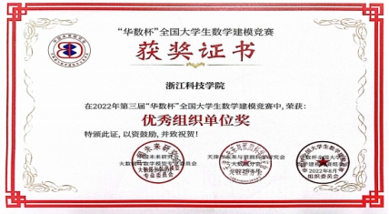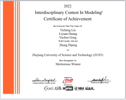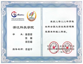 获美国大学生数学建模竞赛一等奖1项(19大数据-刘益成、19自动化-黄丽媛、20中澳机器人工程-龚煜晨);二等奖1项(20中法大数据-应贝宁、20计算机-汤晨铳、20信管-章谨琨);三等奖4项。