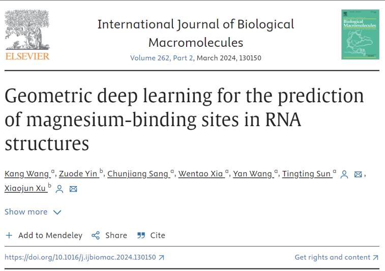应用物理系软物质与生物功能材料研究团队在国际TOP学术期刊《International Journal of Biological Macromolecules》 (IF=8.2,中科院一区TOP) 期刊上发表了题为"Geometric deep learning for the prediction of magnesium-binding sites in RNA structures"的研究论文。浙江科技大学为第一单位,应用物理系2021级硕士研究生王康为第一作者,51吃瓜