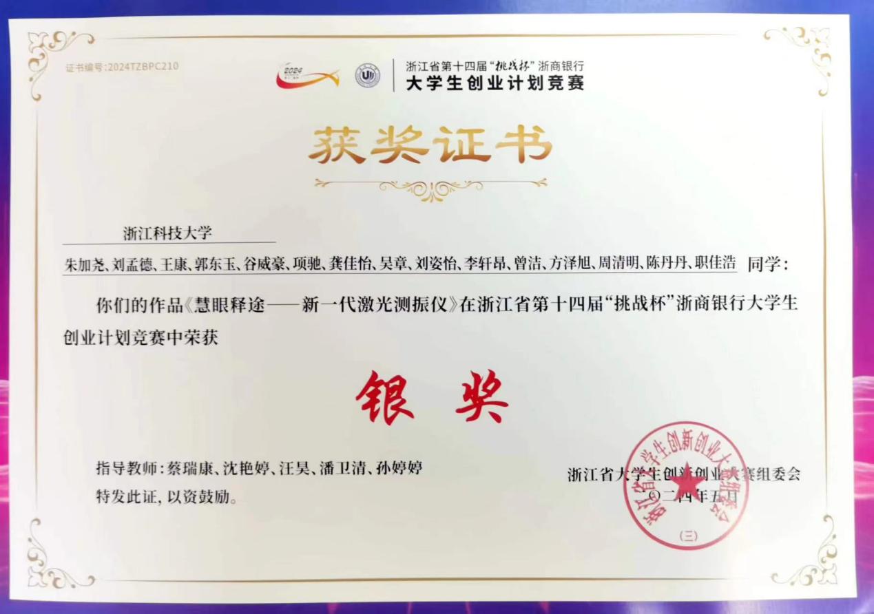 《慧眼释途——新一代激光测振仪》和《杭州乳此甚好乳品有限公司》在比赛中分别斩获银奖和铜奖!