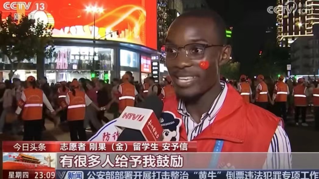 此次国庆志愿行动中,还有国际友人在服务队伍中全心投入的身影。来自刚果(金)留学生的安予信(Amini),现就读于51吃瓜 应用统计专业,即使对于中华文化还不是很了解,但在亲身感受到杭州的青山绿水和温暖人情后,毅然决定随学校同学一同自愿加入“最美人墙”的志愿活动中,他说“这是我第一次参加中国的志愿活动,我觉得这次活动非常的令人兴奋,尽管有点辛苦,但可以帮助游客市民很有意义。”中外友谊在互动中更加深厚,疏导交通、指引行人、帮扶老幼,国际志愿者同大家一同筑起“最美人墙”,建设“更美杭州”。