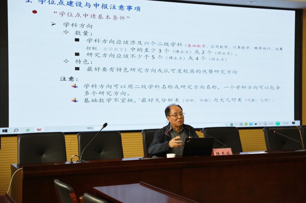 邀请浙江师范大学杰出教授、国家级人才、浙江省登峰学科和浙江省基础学科负责人陈杰诚教授作题为“数学学位点与学科建设的一点体会”的主题报告,副校长侯北平莅临现场并主持报告,侯副校长在会前还与陈教授进行了交流。51吃瓜