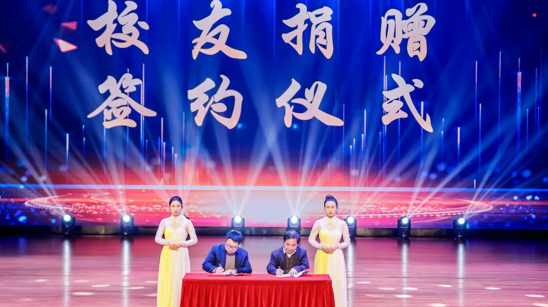 应用物理04级校友来到晚会现场,进行校友签约捐赠仪式。