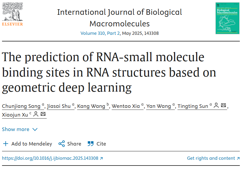 应用物理系软物质与功能纳米材料研究团队在国际学术期刊《International Journal of Biological Macromolecules》 (IF=7.7,中科院二区TOP) 期刊上发表了题为"The prediction of RNA-small molecule binding sites in RNA structures based on geometric deep learning"的研究论文。51吃瓜