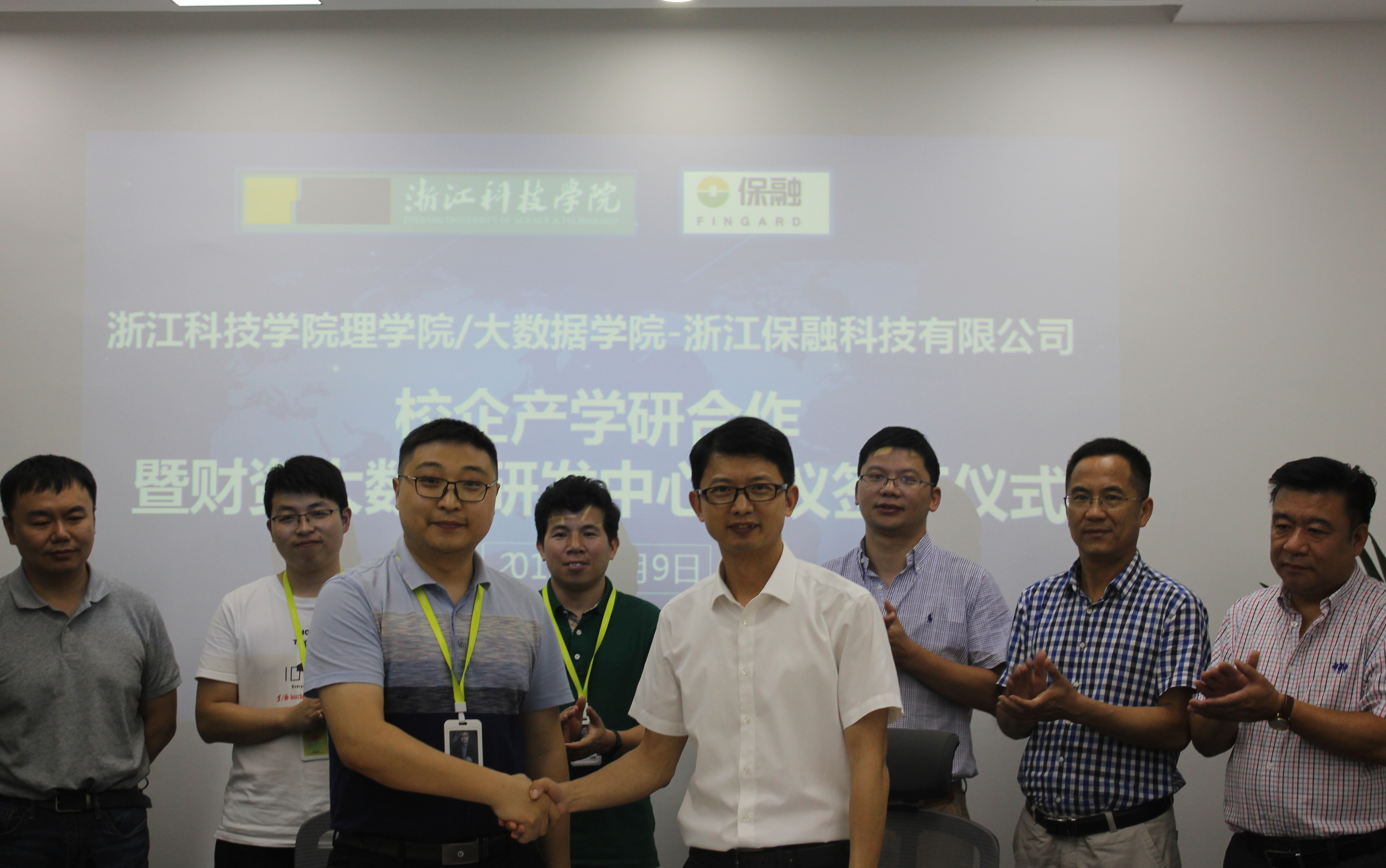 与浙江保融科技有限公司签订产学研合作协议,共同成立“财资管理大数据联合研发中心”,共同建立“校企共建研究生培养基地”。我校党委委员、学院书记/院长陶祥兴、副院长钱亚冠等一行6人参加。
