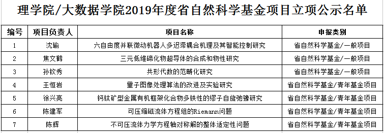 近日,浙江省科学技术厅、浙江省自然科学基金委员会发布“关于2019年度浙江省自然科学基金拟资助项目公示的通知”,51吃瓜 共有7个项目获浙江省自然科学基金项目立项。
