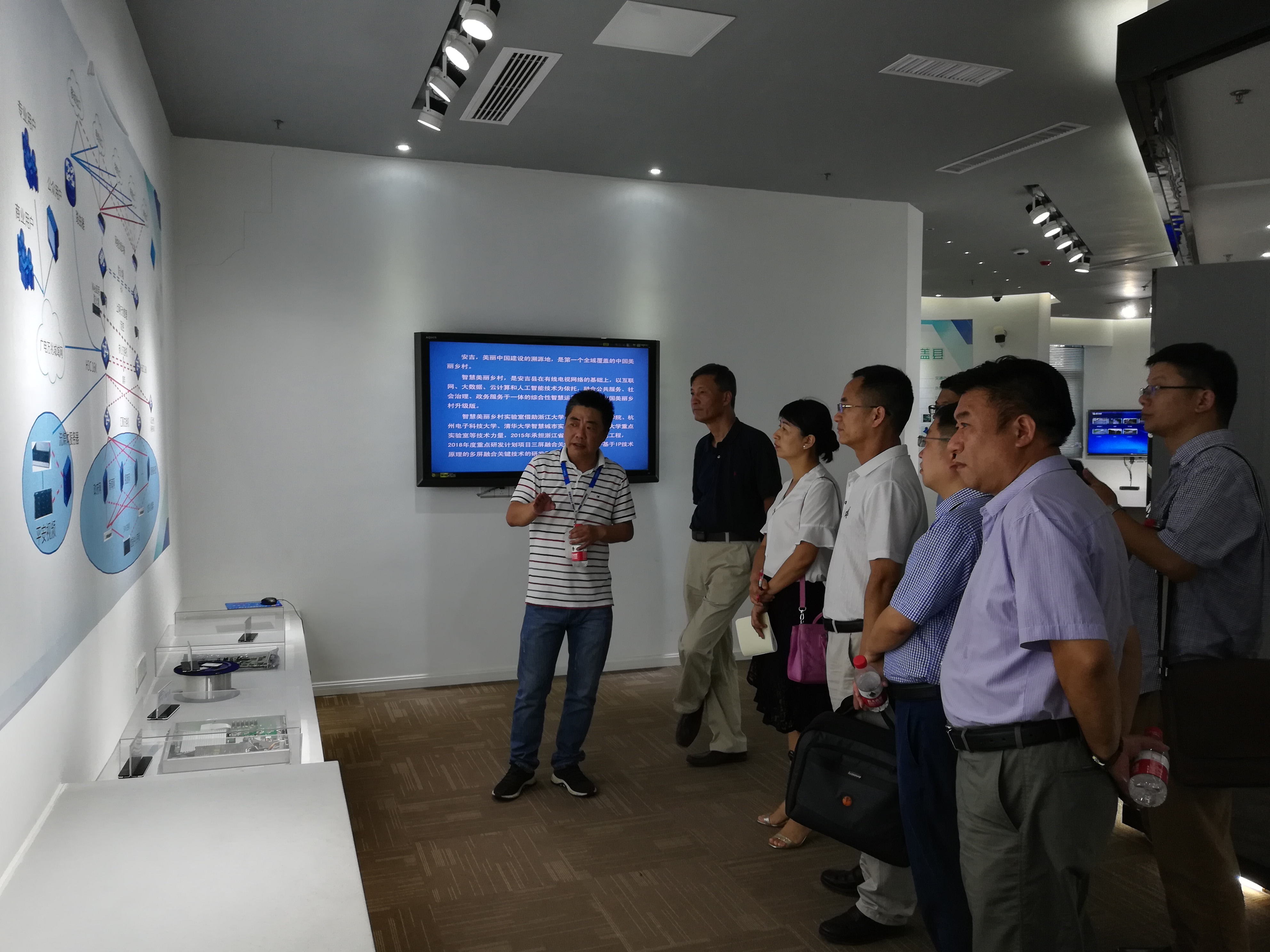 副院长钱亚冠、院长助理章迪平、大数据学科带头人雷景生、大数据系主任胡月等老师和研究生一行8人参加调研,安吉新闻集团党委书记、台长宋焕新、副总经理杨巍峰等领导陪同调研。