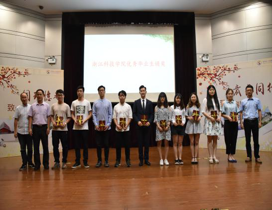 颁奖仪式上,老师们为荣获“浙江省优秀毕业生”“浙江科技学院优秀毕业生”以及考研考公毕业生颁发荣誉证书及奖品,为校友联络员发放聘书。