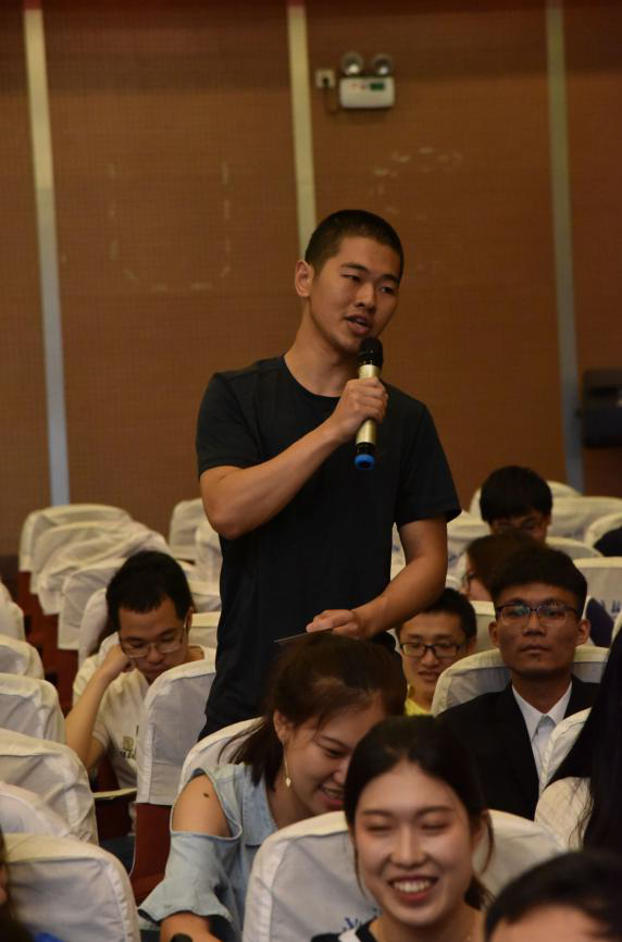 /大数据学院2018届学生会主席、信息与计算科学161班陈乐廷,作为在校生代表向毕业生表示感谢:“无论是刚开学时你们的接待,或是生活中你们的引领,还是学习上你们的指导,学长学姐们永远真诚、热情地帮助我们。是你们的不吝教导,带着我们成长;是你们的挺身而出,为我们遮风挡雨;是你们以身作则,带领我们勇往直前。谢谢各位学长学姐们的关爱,我们将永远铭记于心。”陈乐廷动情地说道:“总有一种力量让我们泪流满面,总有一种力量让我们精神抖擞,总有一种力量它驱使我们不断寻求‘止于至善’。这种力量来自在坐的每一位学长学姐。”最后陈乐廷向学长学姐们表达祝福:“海阔凭鱼跃,天高任鸟飞,祝愿学长学姐们在新的征程,创造新的辉煌!”