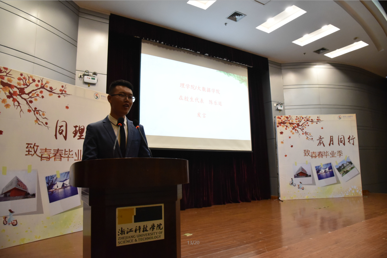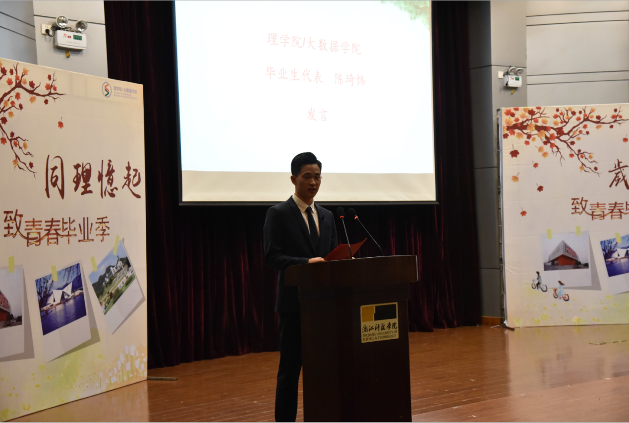 /大数据学院,并在此度过了自己最好的青春年华。他总结了过去几年学院所取得的成就:学院依托学科优势新成立了“曙光大数据学院”;获批数学和物理学一级学科硕士学位授权点、应用统计专业硕士学位授权点,成为我校硕士点最多的二级学院;1名教师成功入选国家级知名专家,2名教师入选省高校“钱江学者”特聘教授,实现突破。“临行密密缝,意恐迟迟归”,陶祥兴向毕业生们提出了殷切希望:一要“牢记院训”。院训是指南针,是黑夜中前行的灯塔,希望同学们将院训牢记心间,做一个明事理、明哲理、明法理,勤奋好学,守心守信,博学致用,融会贯通的理学人。二要“励志拼搏”。习近平总书记在北大的座谈会上的讲话提出四点希望,其中一点就是要励志,立鸿鹄之志,做奋斗者。希望每一位毕业生都能积极培养奋斗精神,不怕困难,勇于开拓,做新时代的奋斗者!三要“勤于学习”。希望同学们走向社会后,不忘学习,“求真学问、悟真道理、练真本领”,通过努力学习,增长见识、不断创新,为民造福、为校争光。