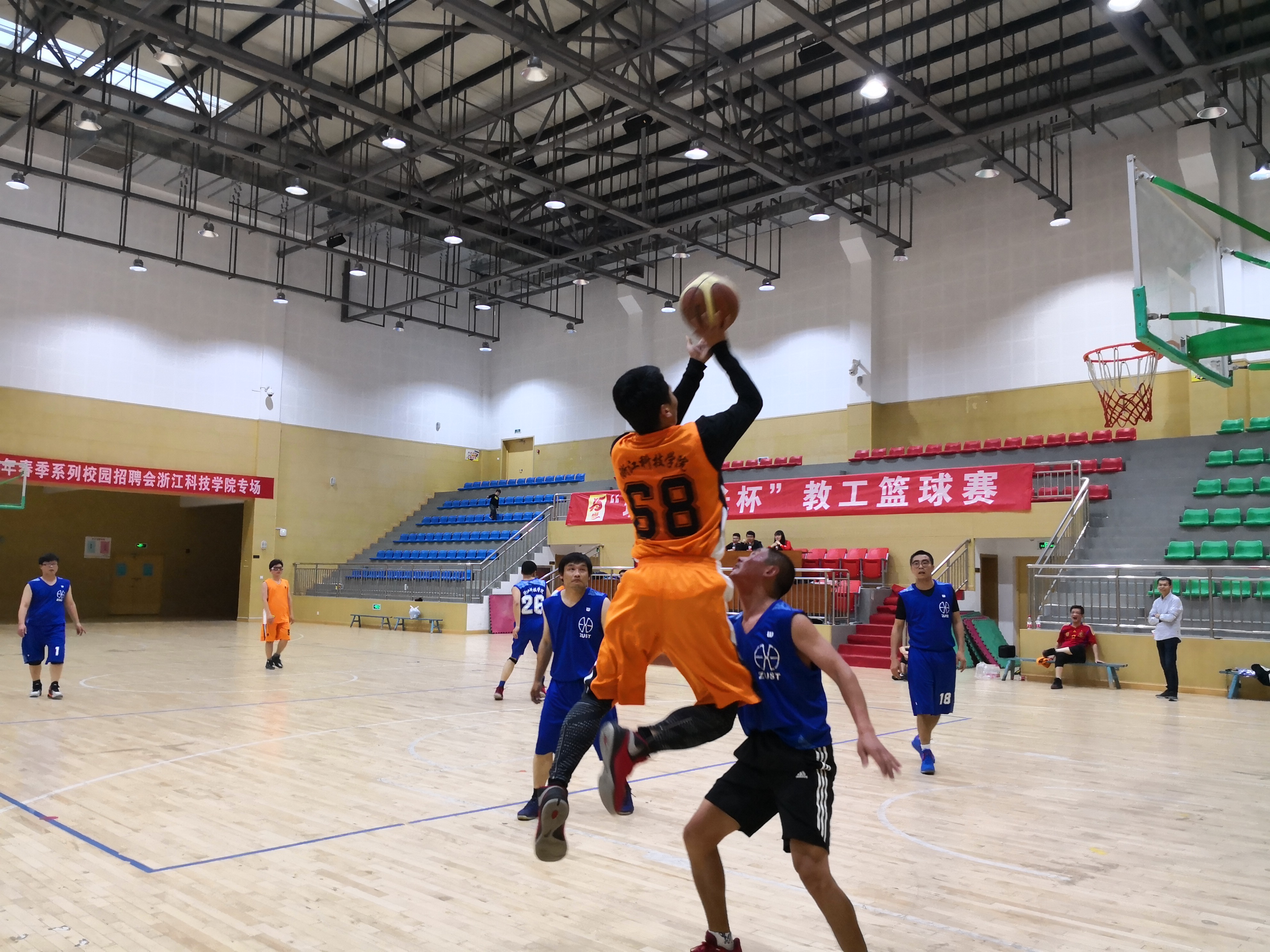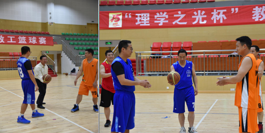 “办学十五周年庆”系列活动之一,“理学之光杯”教工篮球赛在校篮球馆开赛。副校长冯军、郑友取为首场比赛开球,本次赛事得到了校篮球协会的大力支持。
